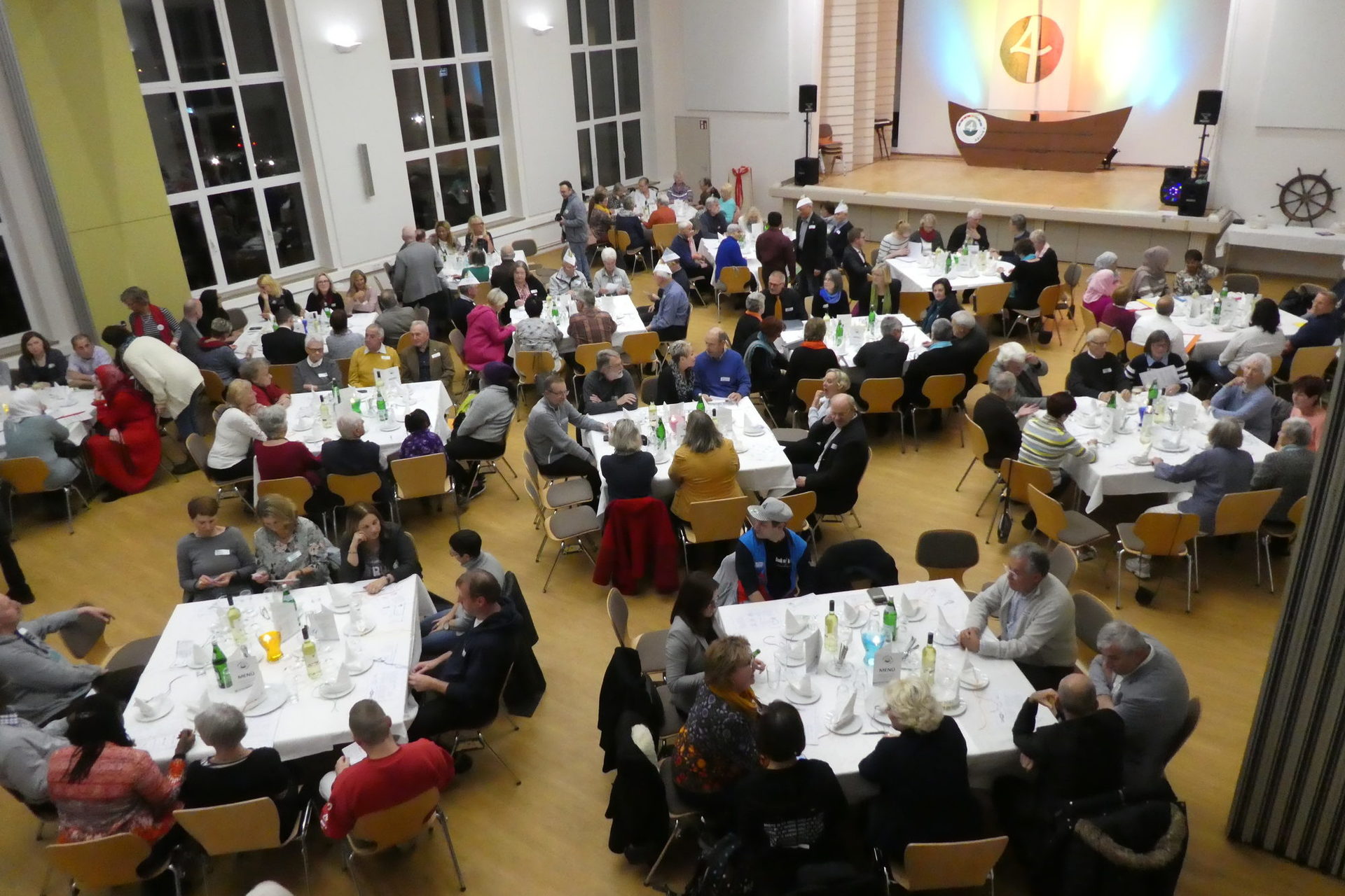 Spielerisch begann die Kreuzfahrt. Oberbürgermeister Frank Klingebiel und Landesbischof Dr. Christof Meyns machten bei dem Frage- und Antwort-Spiel deutlich, wie gut die Zusammenarbeit zwischen Stadt und Kirche sei. Mit dem Projekt „Arche 4“ habe man Neuland betreten. Manche Hürde musste genommen werden. Das Ergebnis sei erfolgreich. Das bestätigten auch die Gäste, die sich mit den Ehrengästen und Beiratsmitgliedern über das erste Jahr der Erkundungsfahrt der „Arche 4“ ins Gespräch kamen.
