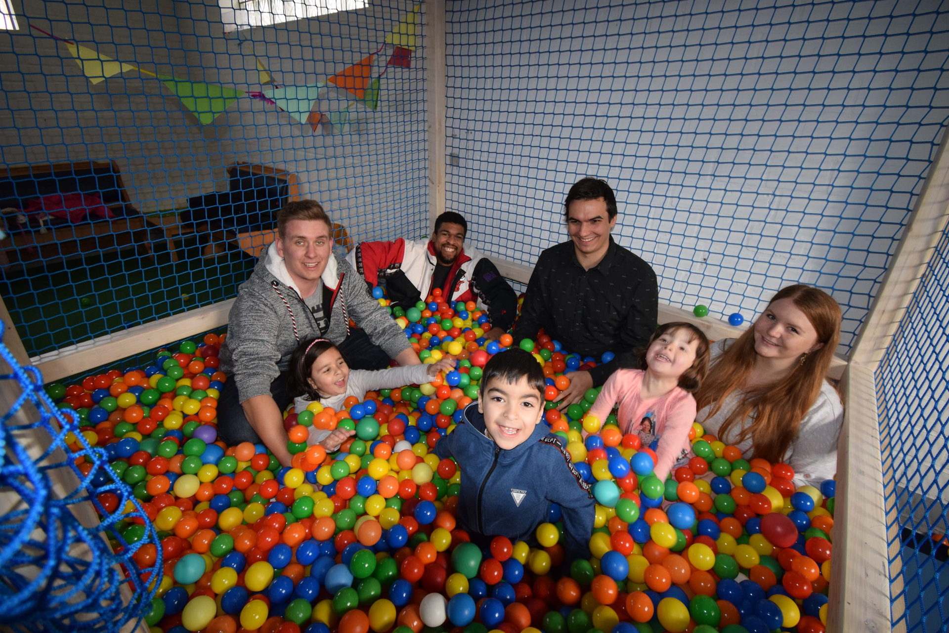 Die Parlamentsmitglieder übergaben 10.000 Bälle an die Kinder und Mitarbeiterinnen/Mitarbeiter für das Theraphie-Bällebad des Kindergartens.