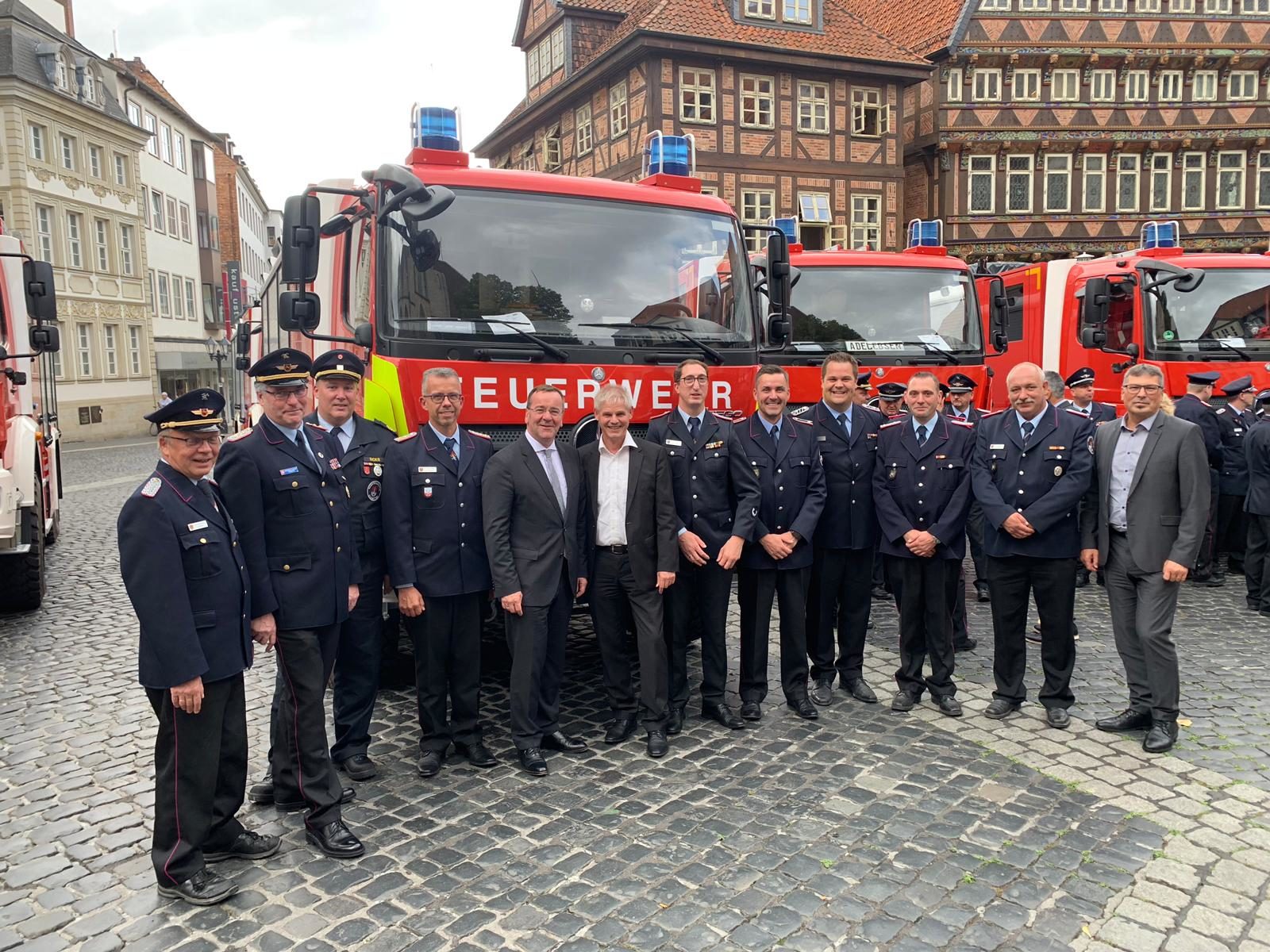Zur Übergabe auf dem Hildesheimer Marktplatz waren auch der niedersächsische Minister für Inneres und Sport, Boris Pistorius, und der Präsident des Bundesamts für Bevölkerungsschutz und Katastrophenhilfe, Christoph Unger, anwesend.