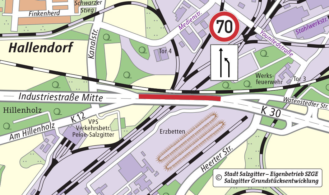 Doch bis zum geplanten Baubeginn gilt erst einmal Tempo 70 in dem 500 Meter langen Abschnitt zwischen Watenstedt und Hallendorf. Die Einfädelungsspur beginnt frühzeitig. Weitere Einschränkungen sind derzeit nicht geplant. Verkehrsumleitungen sind ebenfalls nicht vorgesehen. Mit Verkehrsbehinderungen ist dennoch zu rechnen.
