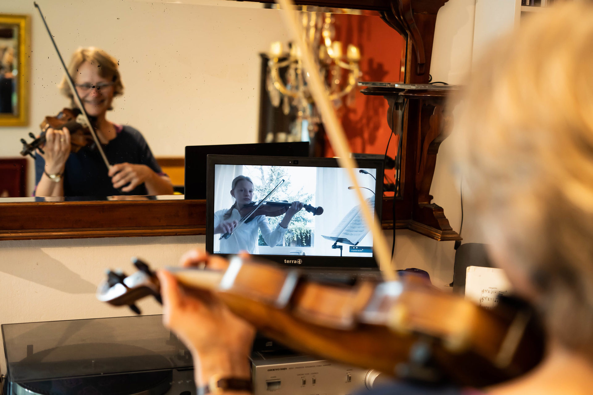 Eine Vielzahl der Lehrkräfte bieten Unterricht via Video- Chat, Mail, Video-Tutorial, Telefon oder einer Kombination mehrerer dieser Komponenten an. Die Schülerinnen und Schüler kommen nun per Bild und Ton über das Smartphone oder den Laptop zu ihrer herkömmlichen Unterrichtszeit mit ihren Lehrerinnen oder Lehrern zusammen. Die Lehrenden können ihre Schüler sowohl hören als auch sehen und dabei auf den Bewegungsablauf und Hand- und Körperhaltung achten. Vermittelt werden beispielsweise das korrekte Arbeiten der Töne, des Tempos oder der Fingersätze. Das gemeinsame Musizieren und die Arbeit am Klang werden dann nachgearbeitet, wenn die Musikschule wieder geöffnet ist.