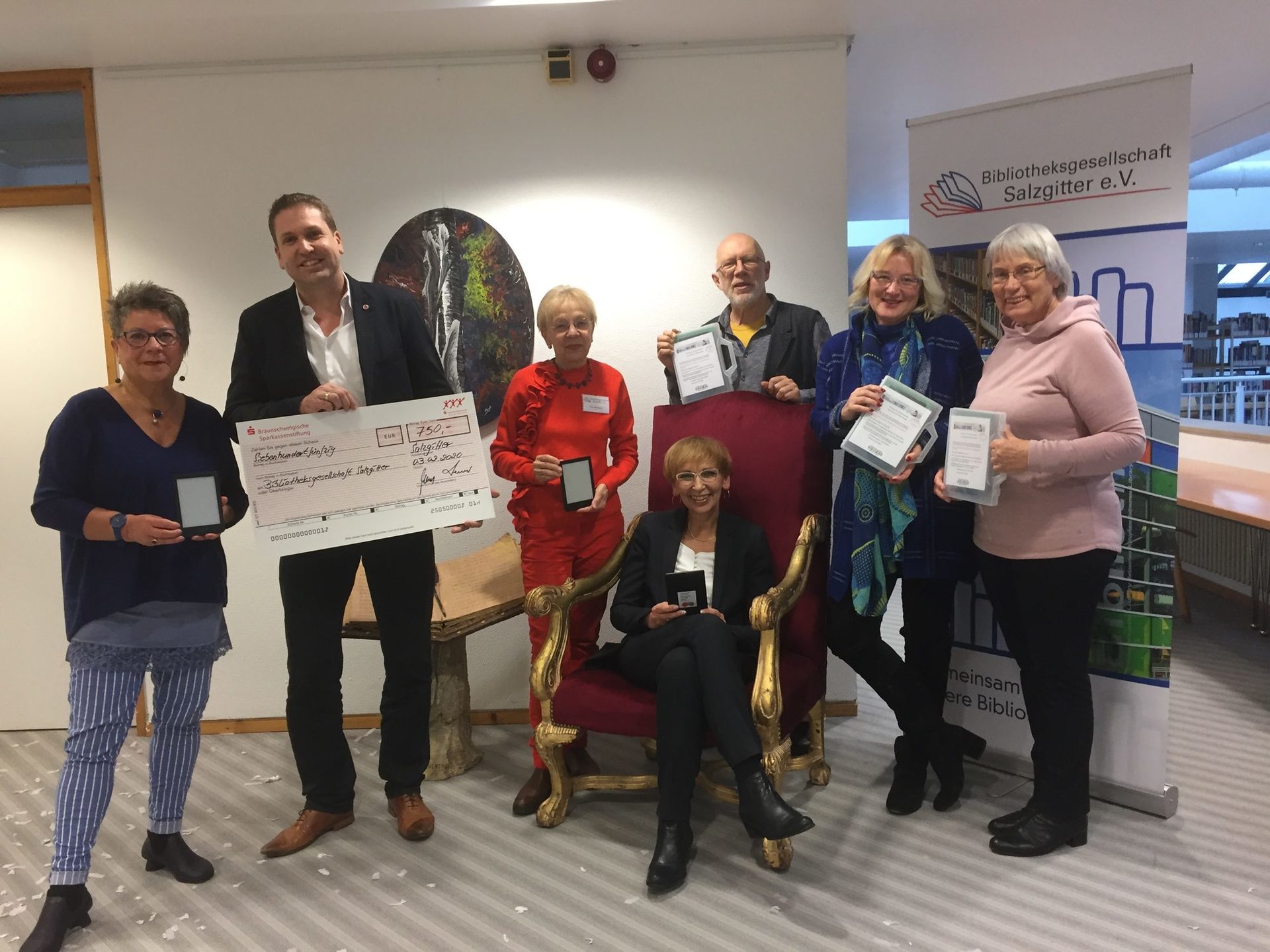 Die Braunschweigische Landessparkasse hat bereits mehrfach die Anschaffung neuer Reader der Stadtbibliothek unterstützt und auch diesmal mussten Maria Gröschler von der Bibliotheksgesellschaft und ihr engagiertes Vorstandsteam die Braunschweigische Landessparkasse nicht lange überreden. Diese erklärte sich spontan bereit, der Gesellschaft erneut sechs eBook-Reader zu spendieren.