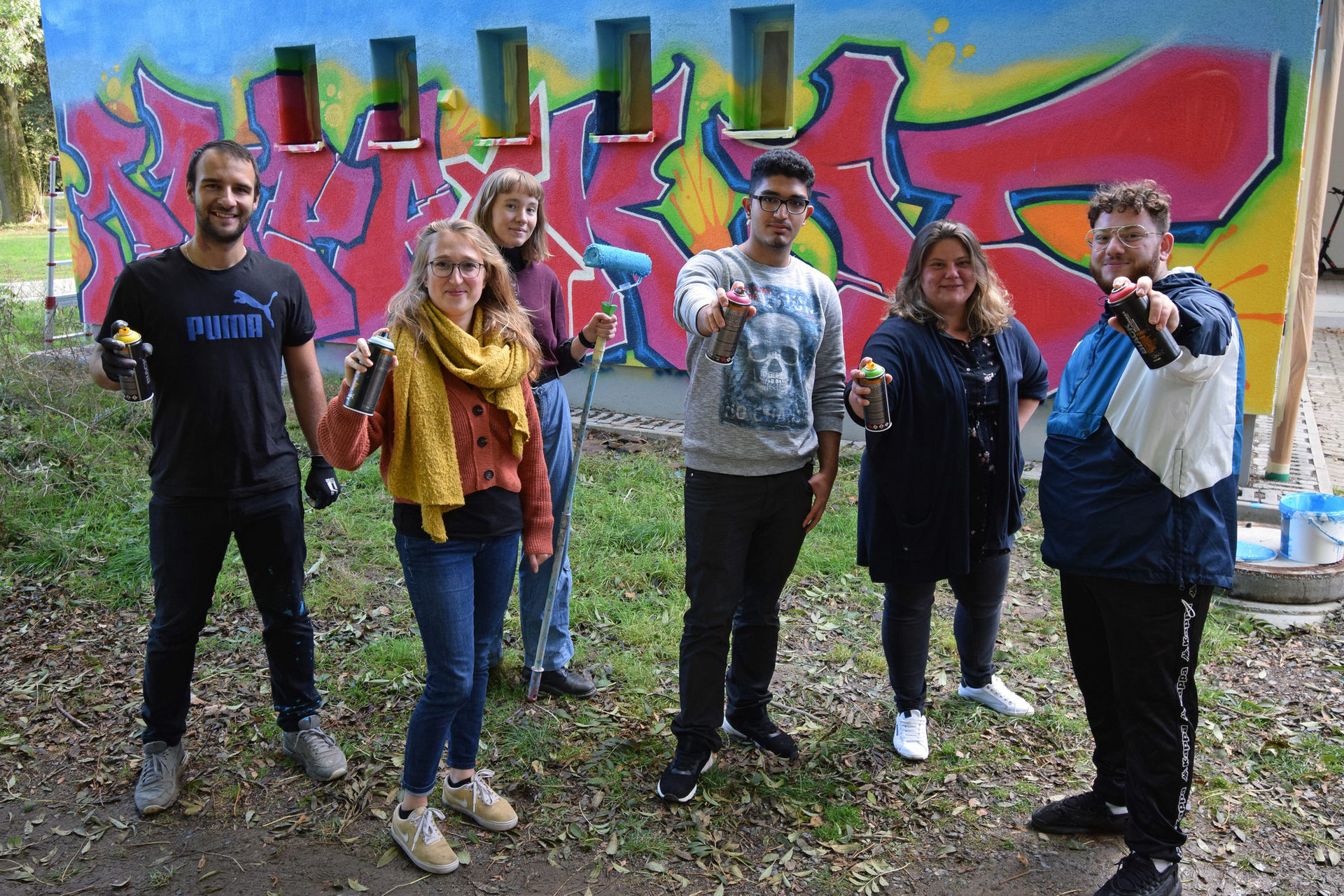 Dazu hatten sich bereits während der Sanierungsarbeiten die KJT-Graffiti Leitung Michaela Grabowski und Carolin Bodenburg mit Vertreterinnen und Vertretern des Jugendparlaments ausgetauscht. „In der Arbeitsgruppe „Chill-Out-Lounge“ gab es den Vorschlag, das Graffiti wieder bunt zu machen und diese Aktion zu unterstützen“, erzählt der Jugendparlamentarier Rasgar Salihi.