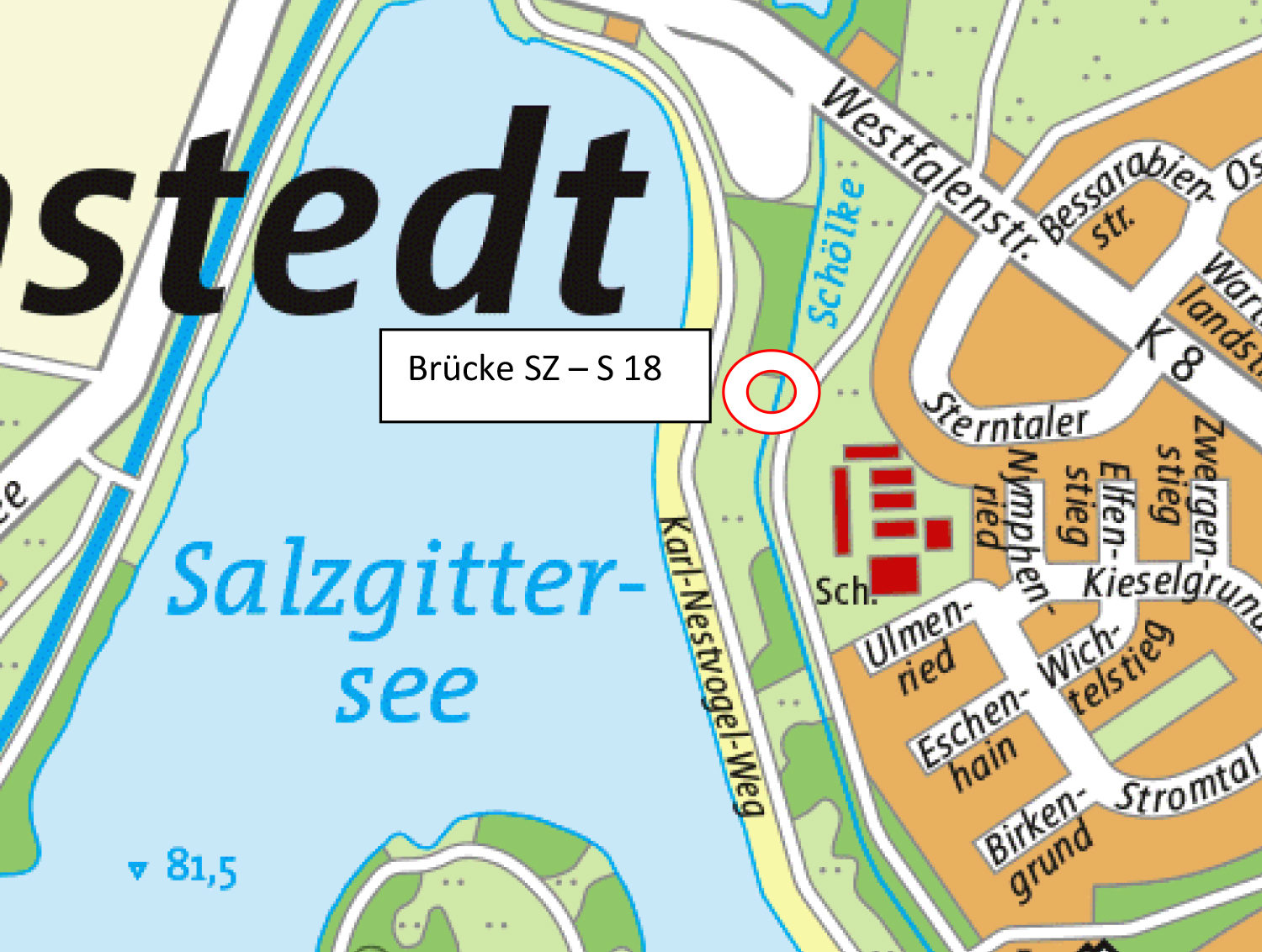 Die alte Holz-Fußgängerbrücke (die erste aus Richtung Westfalenstraße) wurde im Jahr 2004 erbaut. Im vergangenen Jahr wurde bei den regelmäßig stattfindenden Brückenprüfungen gem. DIN 1076 festgestellt, dass die tragenden Längsbalken der alten Holzbrücken teilweise marode / verfault sind.