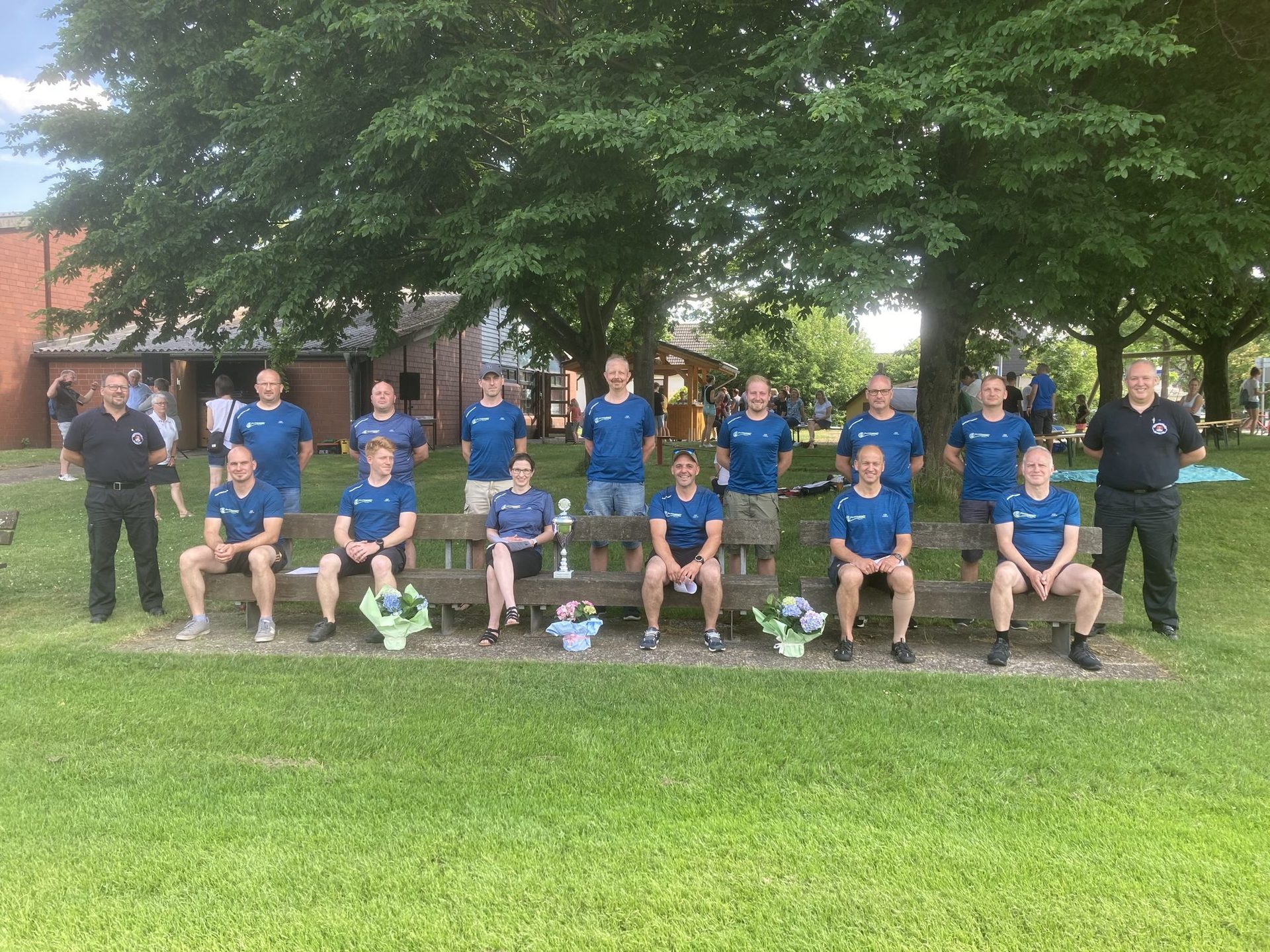 Auf die Initiative des Wachabteilungsleiters Ingo Beemers hatten die 18 Feuerwehrleute der Wachabteilung 3 zum ersten Mal das Sportabzeichen beim TSV Leinde abgelegt. Der vom TSV Leinde gestiftete Wanderpokal für die meisten errungenen Sportabzeichen in einer Abteilung ging für die im Jahre 2020 abgelegten Sportabzeichen an die Einsatzkräfte der Berufsfeuerwehr. Ein großes Lob für die erbrachten Leistungen bekamen die Sportler der Berufsfeuerwehr Salzgitter vom ihrem Fachdienstleister Arne Sicks und dem Pressesprecher der Feuerwehr Marcus Spiller.