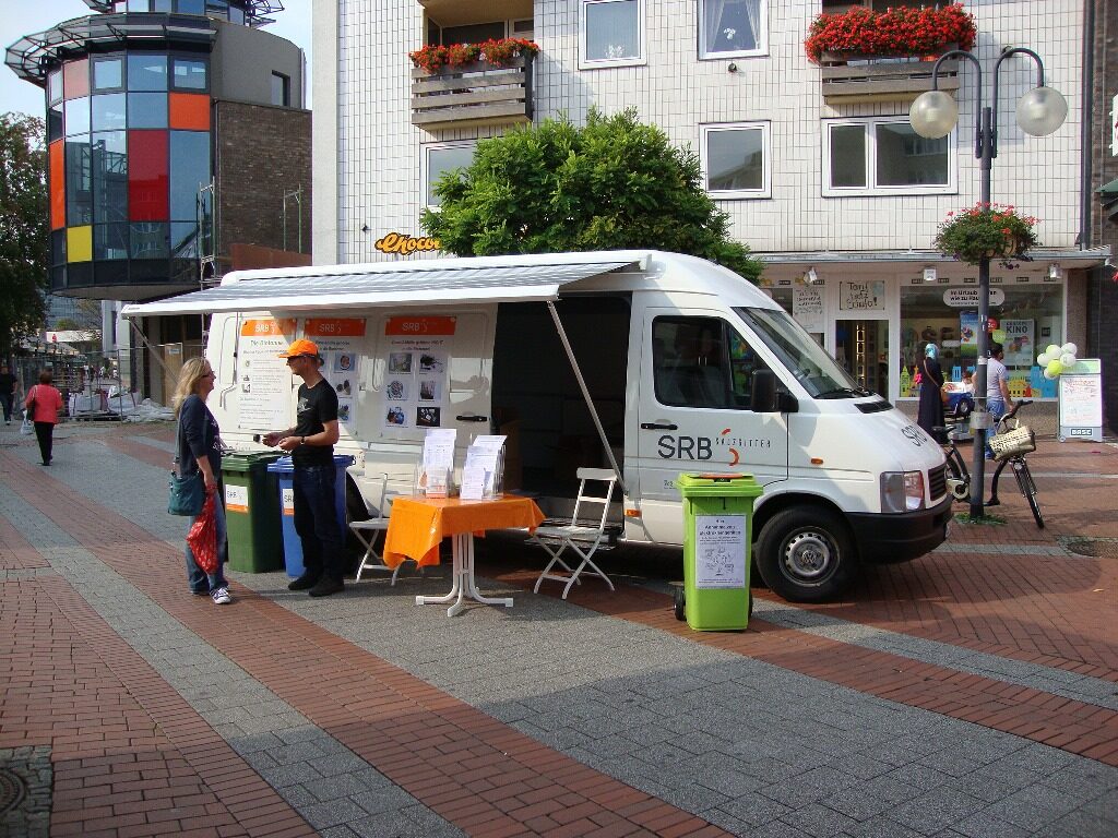Am Stand des SRB werden Informationen zur Elektroaltgeräte-Entsorgung, Biotonne, zum Restabfallbehälter, Gelben Sack, Sperrmüll, Containerdienst und sonstigen Themen der Abfallentsorgung gegeben. Zudem können am Infostand auch Elektrokleingeräte (bis maximal 30 Zentimeter Kantenlänge) wie zum Beispiel Elektrorasierer, Fön, Mixer, Wecker, sowie auch Handys und CD´s kostenlos abgegeben werden.